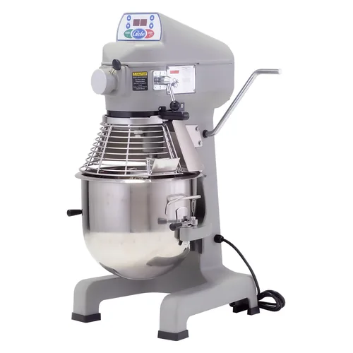 Capacidade: 20 qt (19L). Tipo: piso. Motor: 1,5 HP. Velocidades: 3 velocidades. Acessórios inclusos: batedor globo, raquete, gancho de massa. Construção em aço inoxidável. Garantia de 1 ano do fabricante.