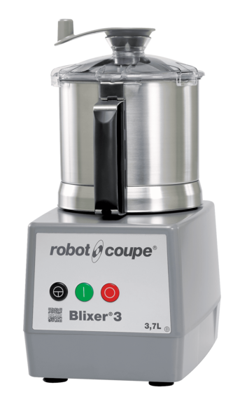 O Robot Coupe Blixer® 3 é um mixer-cúter profissional de bancada desenvolvido para cozinhas que precisam mixar, emulsionar e homogeneizar preparações em um único equipamento. O nome Blixer® une as funções de blender e mixer: a cuba de 3,7 litros em aço inox processa sopas, purês, molhos, emulsões e dietas de textura modificada com velocidade constante de 3.600 rpm. É o modelo de entrada da linha — indicado para restaurantes, cafeterias, clínicas e unidades de saúde que produzem até 10 porções de 200 g por batelada.