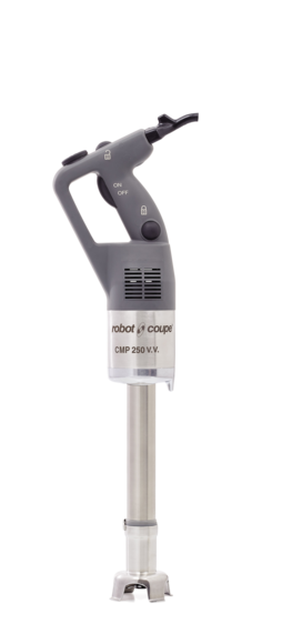O Robot Coupe CMP 250 é o triturador de mão profissional da linha CMP, projetado para cozinhas comerciais com capacidade entre 50 e 100 cobertas. Com motor de 310 W e tubo de 250 mm, executa sopas, cremes, molhos, purês e emulsões em preparações de até 15 litros. A linha CMP introduz o sistema de cabo removível EasyPlug e a velocidade com auto-regulação — características que o diferenciam estruturalmente da série Mini MP.