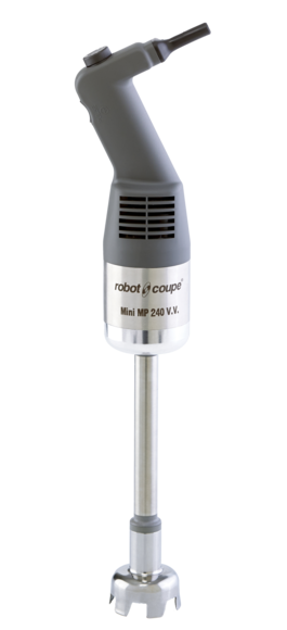 O Robot Coupe Mini MP 240 V.V. é o triturador de mão profissional para cozinhas que atendem entre 50 e 100 cobertas por serviço. Com tubo 26% mais longo que o Mini MP 190, alcança panelas de maior profundidade sem respingo, mantendo a agilidade de um mixer de mão industrial compacto. Aplicado em sopas, cremes, molhos, purês e preparações que exigem textura homogênea e controle de velocidade.